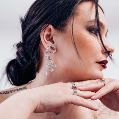Kaxiga örhängen i form av hoops med slingrande orm som hänge! Sjukt coola till vilken outfit som helst!
