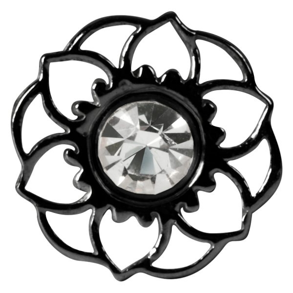 Push-Fit Labretstav i Bioplast® med en 8 mm stor mandalablomma i silver och en liten glittrig vit sten i mitten.