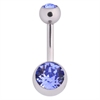 Navelbarbell i titan med facettslipad sten i bottenkulan och toppkulan. Modellen finns i olika färger och är det vanligaste bas-smycket för navelpiercings.